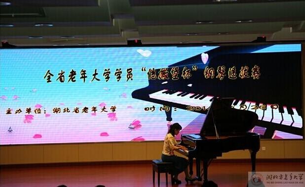 为丰富中老年朋友文化生活,弘扬高雅艺术,传播先进文化,推动中南地区中老年钢琴教育和演奏艺术的普及,进一步提高我校钢琴教学质量, 4月20日我校举办了省老年大学学员钢琴比赛,从400多名钢琴班学员中选拔25名学员于26日与全省各市、州老年大学推荐学员一起参加决赛。由武汉音乐家协会顾问、武汉钢琴协会副会长陈治海组成的5位专家评委经过认真评选,按打分高低,最终选出14名学员将代表湖北省赴广州参加“恺撒堡杯”中南地区老年大学钢琴比赛,我校吴亚明、杨珈林、沈俊兵等学员入围,校领导李辉同志出席比赛并致开幕辞。