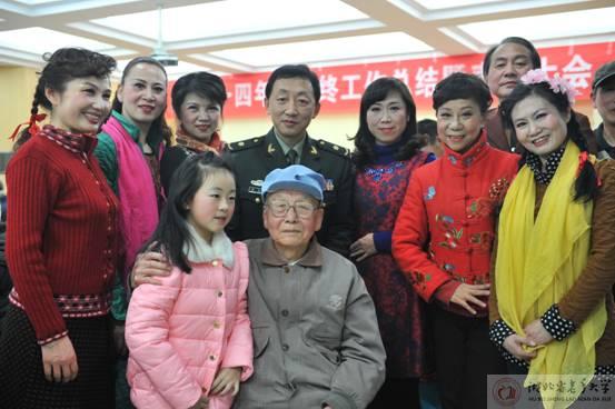 94岁的老八路,八路军冀东军区7分区侦查科长李拌池老首长,戴上了八路军军帽,拉着演员们合影留念,老八路兴奋的挥手喊道“大刀……杀啊……”。看着老首长和部队官兵满意的笑脸,队员们的疲惫一扫而尽,都沉浸在小年的欢乐喜庆中。 (崔遂川)