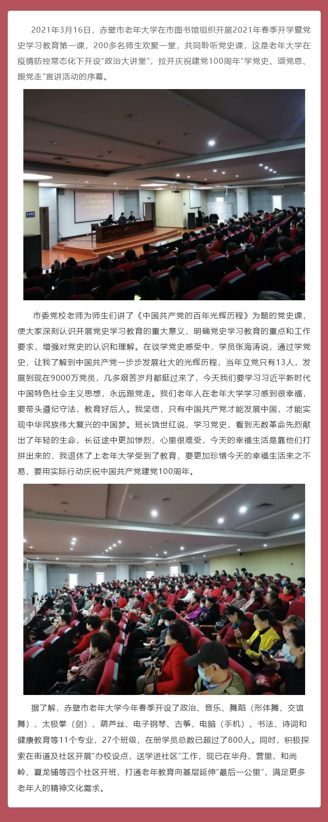 赤壁市老年大学开学第一课