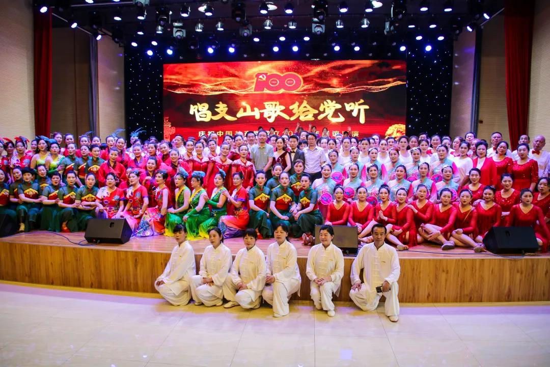 演出在热情洋溢的秧歌舞《打开幸福门》中拉开序幕,《唱支山歌给党听》《光荣与梦想》《四渡赤水出奇兵》等节目,唤起观众对党的百年发展历程的记忆;《扬鞭催马运粮忙》《盛世国风》《那些花儿》《情到深处》《火红的岁月》《金孔雀与凤尾竹》《陈氏太极综合套路三十八式》则分别通过顺笛演奏、走秀、舞蹈、葫芦丝演奏及太极拳表演等不同形式,展现了在党的领导下各项事业欣欣向荣、蓬勃发展的生动画面;《我的祖国》《扶贫路上新绣娘》表达了广大老同志深厚的爱党之情,彰显了新时代老同志爱党爱国爱生活的精神风貌,最后,演出在全体起立合唱《没有共产党就没有新中国》的歌声中圆满结束。