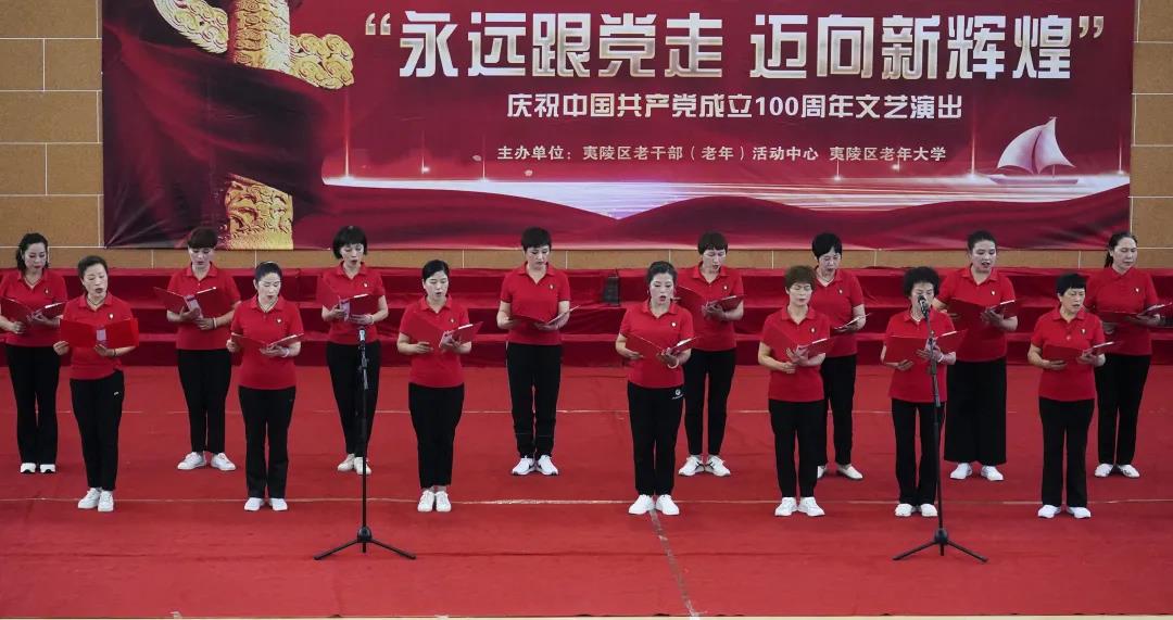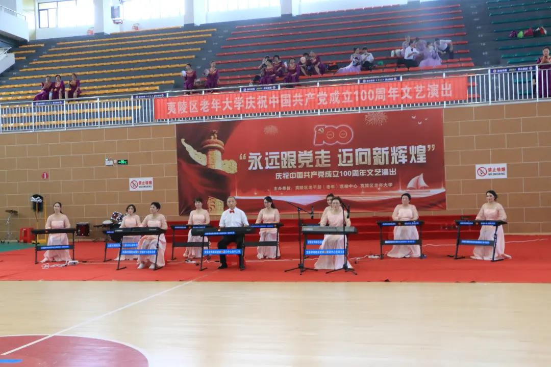 在中国共产党百年华诞之际,6月29日,夷陵区老干部(老年)活动中心、老年大学庆祝建党100周年“永远跟党走 迈向新辉煌”文艺演出在区体育馆隆重举行。