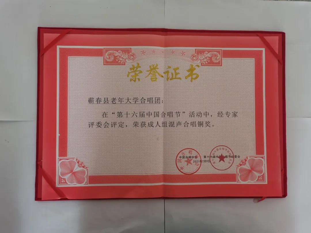 蕲春县老年大学合唱团参加第十六届中国合唱节荣获铜奖