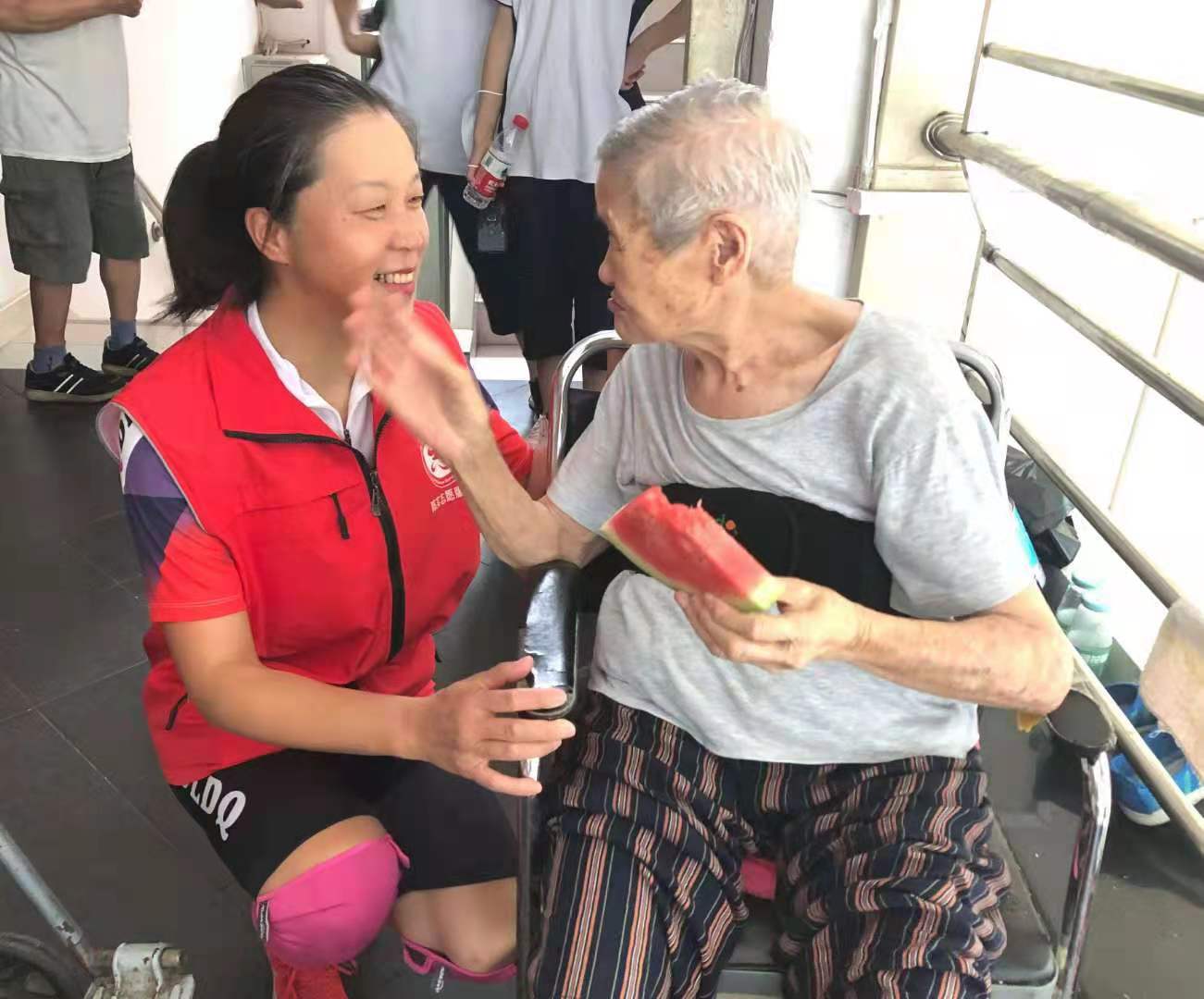 7月19日,在三峡老年公寓,齐艳随陈实志愿者服务队,又来看望慰问孤寡老人,“老人家,您们身体还好吧?”