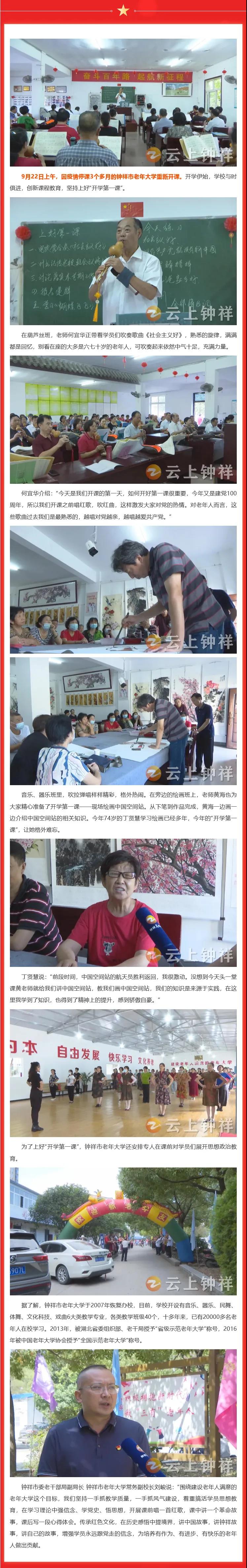 钟祥市老年大学上好“开学第一课”