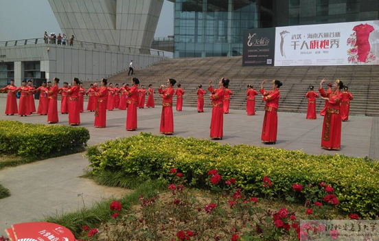 (通讯员 冯爱英)2015年5月24日,新洲区校模特队23人参加了由武汉市群众艺术馆、武汉市模特协会、武汉地区老年大学(学校)协会联合举办的武汉市首届《武汉•海南“天籁谷杯•千人旗袍秀”》展示活动。活动在汉阳琴台歌剧院广场举行。来自武汉各地的模特协会会员团队、武汉地区老年大学模特班、武汉市各协会、各社区、各大专院校、各大型企业模特队共37个团队千名模特参加了此次展演。市模协、市老年大学协会的有关领导到场观看了展演。举办此次活动是为了贯彻党的十八大精神,弘扬中华服饰文化,丰富武汉地区中老年人的生活,为武汉市文明城市建设做贡献。