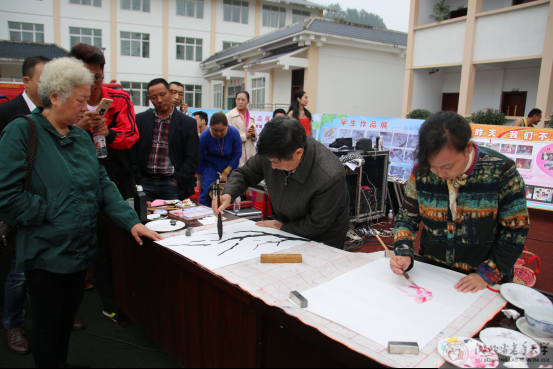 国庆节前夕(2015年9月28日),恩施州老年大学枫叶画社学员代表应州残联和智残协会的邀请,由校委马建萍和班主任王云带队,一行6人到建始县特殊教育学校,参加《爱在人间,文明家园,2015年国际耷人节暨文明城市创建,爱心助残进社区》绘画交流活动。王云、向智林、李伊克、李彩萍,分别在现场挥毫作画,以画寄语对特校师生的心愿,同时还向特校师生另赠送了枫叶画社学员的“马到成功”和“惠风和畅”等36幅国画作品。