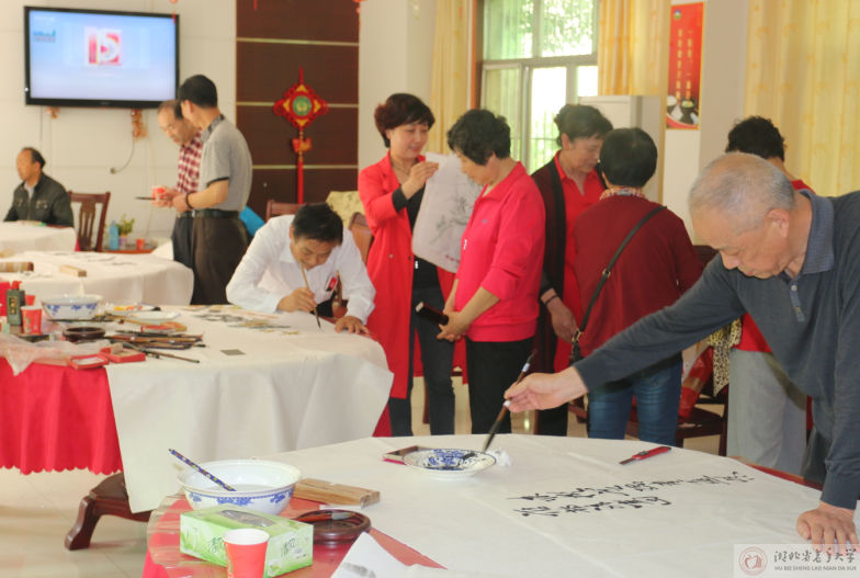 5月5日下午,黄梅县国土局食堂大厅内人来人往,异常热闹。来自黄梅县老年大学书画班的师生们在此摆开餐桌当课桌,轮流上阵,现场挥毫泼墨,不时赢得阵阵掌声和喝彩。这是黄梅县老年大学又一次成功的第二课堂教学活动。