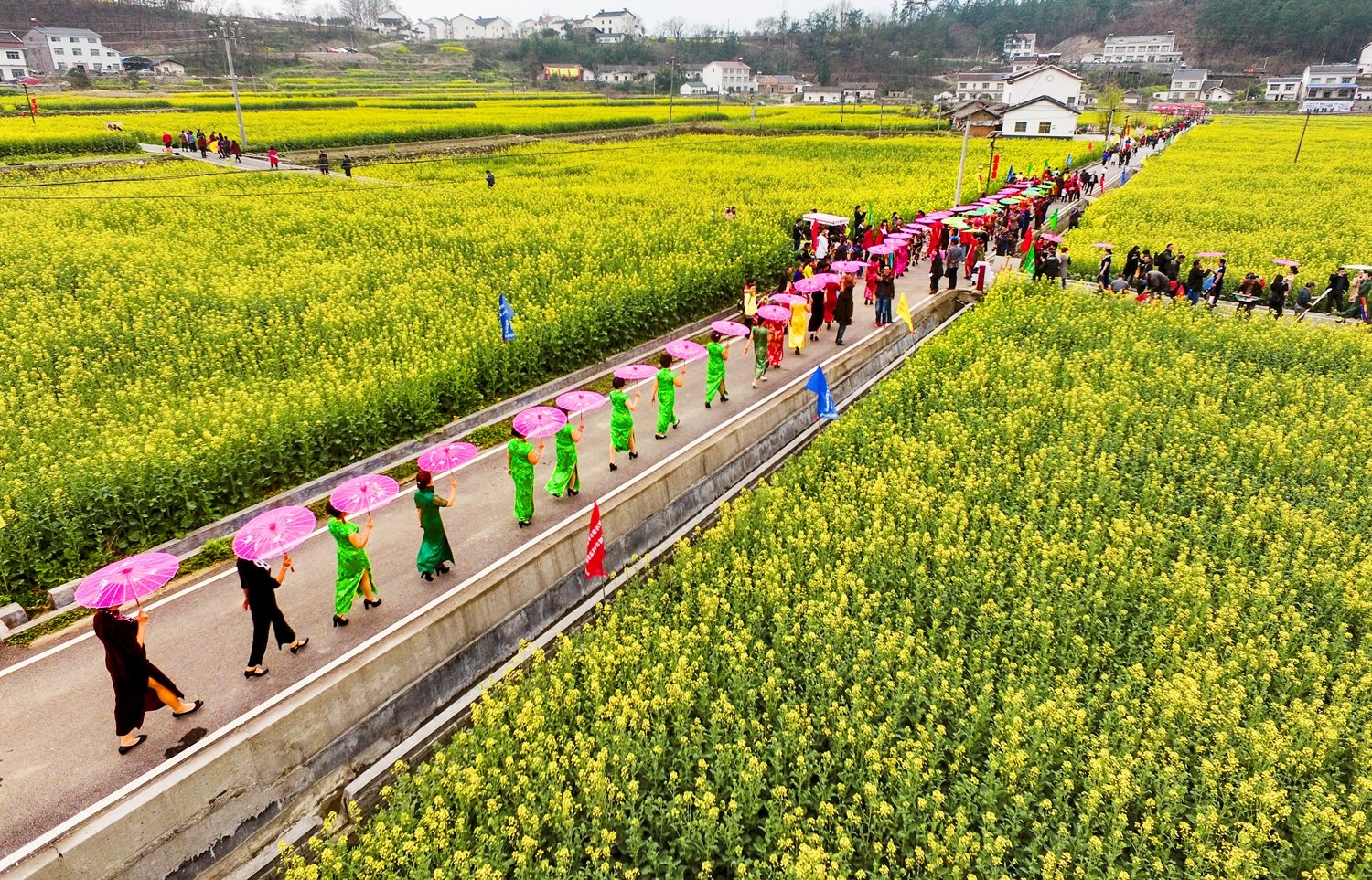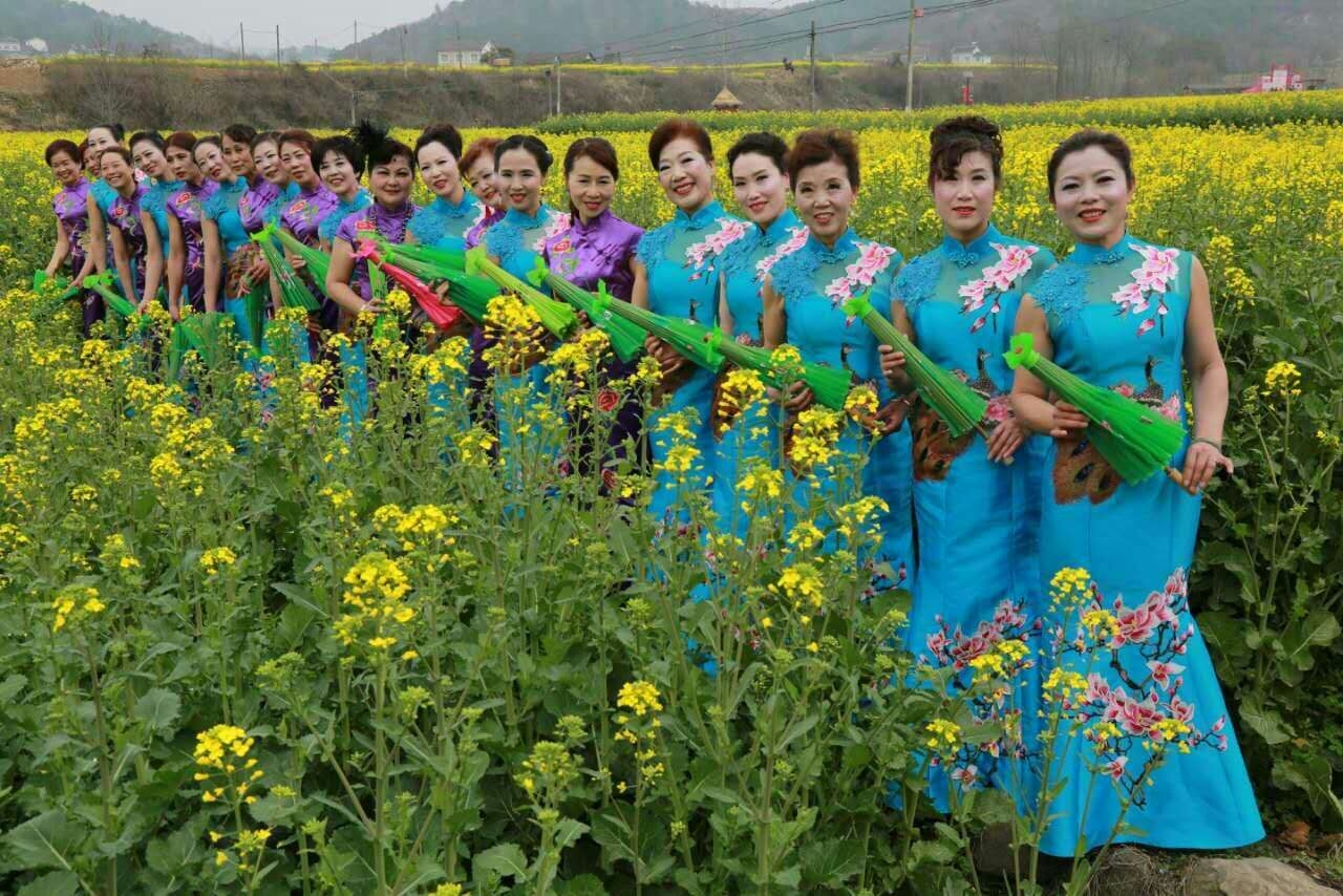 夷陵区老年大学形体班百名旗袍佳丽 分乡南垭踏青赏花旗袍秀圆满成功