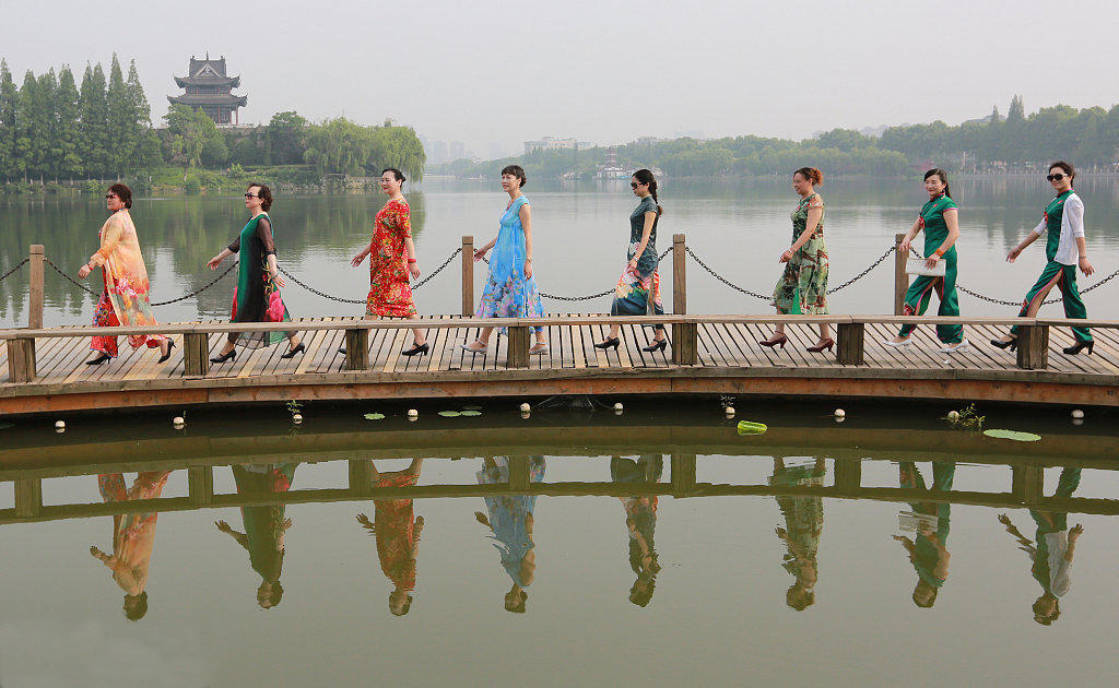 5月21日舞蹈系系旗袍表演班临时党小组,以党员为核心,组织百名学员在襄阳古城护城河畔进行快闪走秀,展示老年人的精神风貌,营造“人人有责”的创文氛围。