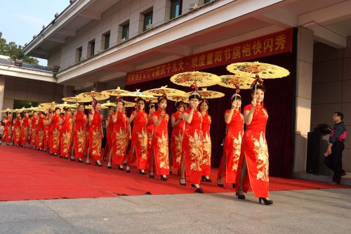夷陵区老年大学举办“喜庆十九大 欢度重阳节”旗袍秀快闪活动