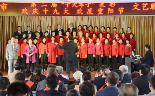 “十大孝子”表彰颁奖大会结束后,参加会议的全体领导与老年大学师生一起观看了由市老年大学举办的欢庆十九大,欢度重阳节文艺联欢会。文艺演出在大合唱《老年大学校歌、在希望的田野上》中拉开帷幕,男生独唱《扯开嗓子一声喊》、舞蹈《风筝误》、钢琴演奏《太阳红》、戏曲联唱《没有共产党就没有新中国》等充分展示了中华民族优秀的传统文化和老年人的精神风貌,展现出老年人对幸福生活、美好未来的热爱和向往。