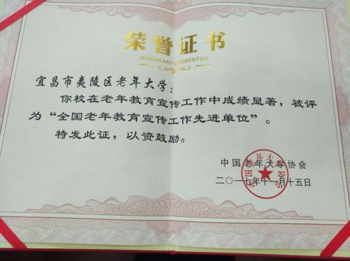 夷陵区老年大学荣获全国老年教育宣传工作先进单位