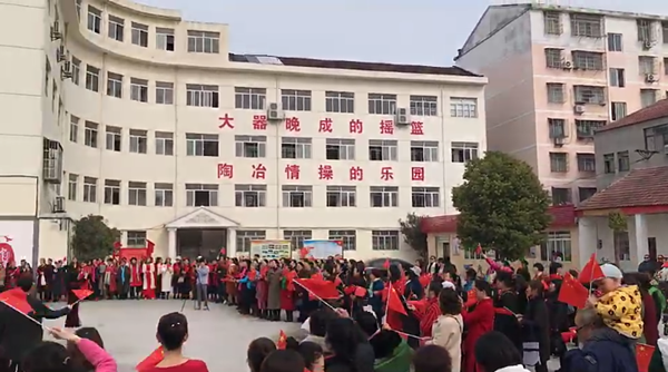 3月15日,宜城市老年大学2019年新学期开学典礼在教学楼前小广场举行,全校学员精神抖擞的挥舞着五星红旗,以快闪活动形式,深情激昂地高声同唱《我和我的祖国》,充分表达各自心中对新中国70周年华诞的挚爱。