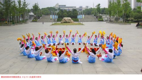 “我和我的祖国,一刻也不能分割,无论我走到哪里,都流出一首赞歌......”“家是最小国,国是千万家,有了强的国,才有富的家,我爱我国家......”“五星红旗迎风飘扬,胜利歌声多么响亮,歌唱我们亲爱的祖国,从今走向繁荣富强......”“满怀豪情领略浩荡的风,踏平坎坷我们荣辱与共,实现梦想拥抱天边彩虹,我们昂首再启程,共筑中国梦......”“阳光年华,阳光年华,我要用阳光拥抱我的国家......”。汉江边,新桥畔,浩然前,虽然没有华丽的舞台,没有多彩的服装,更没有多余的语言,但是襄州老年大学的老同志们不畏骄阳,不畏风雨,他们只是用自己那颗闪亮的红心和最质朴的行动,将一首首大家耳熟能详的歌曲和旋律用服饰、交谊舞、模特、歌咏、戏曲、太极、柔力球、腰鼓、健身舞、表演舞、气功、鼓号、民族舞、形体、葫芦丝等所有自己会的能表现出来的形式向祖国母亲表达他们赤子之心的拳拳爱国之情。