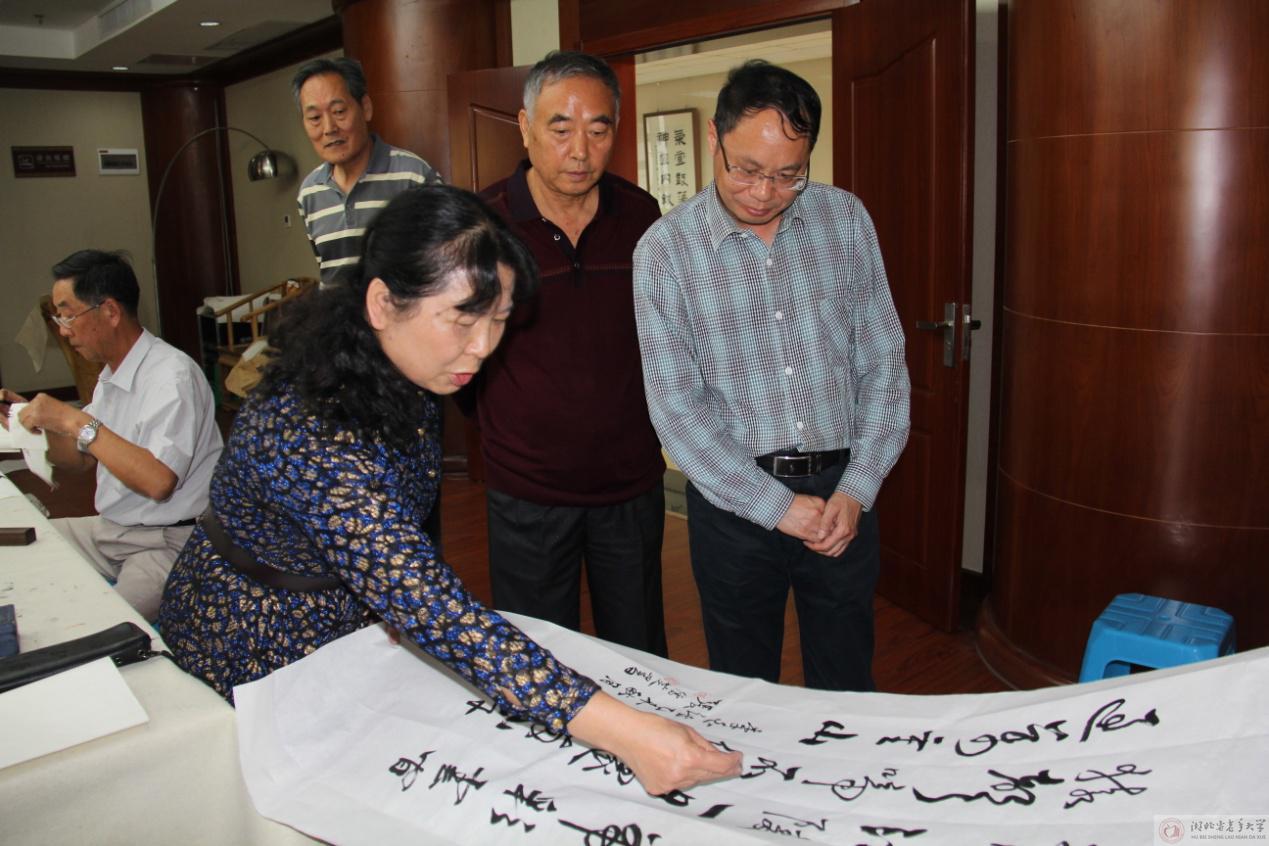 (通讯员李秋堂 侯玮玮 )为弘扬祖国爱老、敬老的光荣传统,巩固第一课堂教学成果,实现教学手段多样化,提高学员的学习积极性,激发学员的创作热情,10月21日——23日教管处安排书画专业开展了“重阳笔会”第二课堂活动,进行了6场,花鸟、山水、隶书、楷书、行草、篆刻等学科的14个班的多名学员报名参与了重阳笔会。现场创作300余幅作品,评出好作品90余幅。任课老师王修隆、张志、陈行健、李福林、郑江、金铿等亲临现场指导。