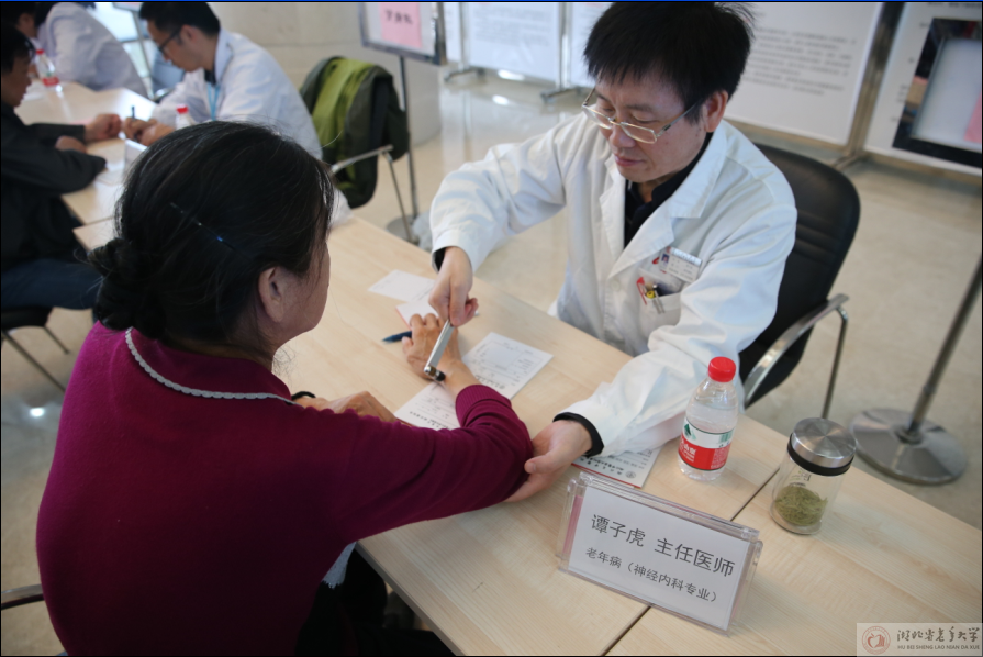 此次义诊作为重阳系列敬老活动之一,得到了湖北省中医院老年病科的大力支持。由科室主任谭子虎教授带队,10位医务工作者在综合厅一楼大厅为我校近300名学员、团员提供免费的神经内科、心血管内科、肾病科、消化内科等方面的问诊和健康咨询,同时安排医疗仪器现场为学员进行记忆力筛查和血糖血压测量等常规检查。义诊期间,医生们详细解答老同志关于常见病、多发病的预防诊治及愈后护理等问题,还向他们讲解了卫生保健、饮食安全、合理用药等方面的卫生常识,普及了定期体检的重要性,鼓励老同志养成健康的生活习惯。